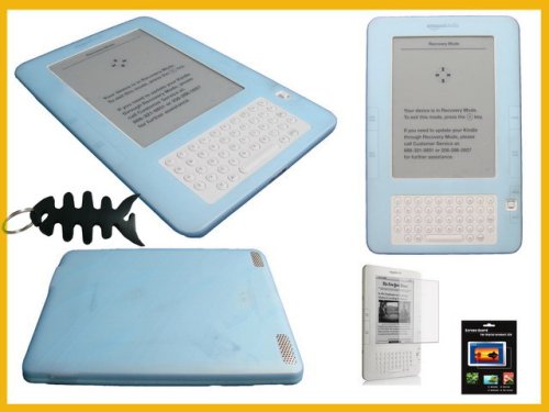 Blue Silicone Case Skin for Amazon Kindle 2 Wireless eBook Reader + Screen Protector + Fishbone Style Keychain Review