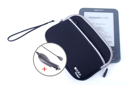 DURAGADGET Black Water Resistant Neoprene Soft Case For New 2010 Kindle 3 Wireless Reading Device, Wi-Fi, 6" Display, Graphite + Car Charger Review