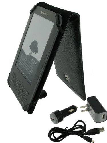 rooCase 4n1 Flip (Black) Leather Case with USB Data / Wall / Car Charger for Amazon Kindle Wireless Reading Device with 6" Display 3G + Wi-Fi (3rd Generation and Latest Generation) Review