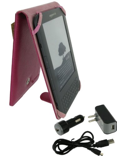 rooCase 4n1 Flip (Hot Pink) Leather Case with USB Data / Wall / Car Charger for Amazon Kindle Wireless Reading Device with 6" Display 3G + Wi-Fi (3rd Generation and Latest Generation) Review