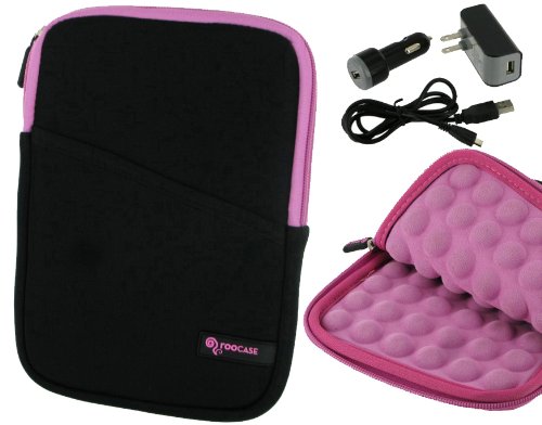 rooCASE 4n1 Super Bubble Neoprene Sleeve Case with USB Data / Wall / Car Charger for Amazon Kindle 2 Wireless Reading Device (2nd Generation) (Black/ Pink) Review