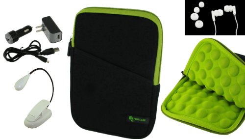 rooCASE 6n1 Super Bubble Neoprene Sleeve Case with LED Clip-on Book Light / Earbud/ USB Data / Wall / Car Charger for Amazon Kindle 2 Wireless Reading Device (2nd Generation) (Black/ Neon Green) Review