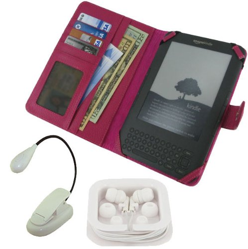 rooCase 3n1 Folio (Hot Pink) Leather Case with LED Clip-On Book Light and Earbud for Amazon Kindle Wireless Reading Device with 6" Display 3G + Wi-Fi (3rd Generation and Latest Generation) Review