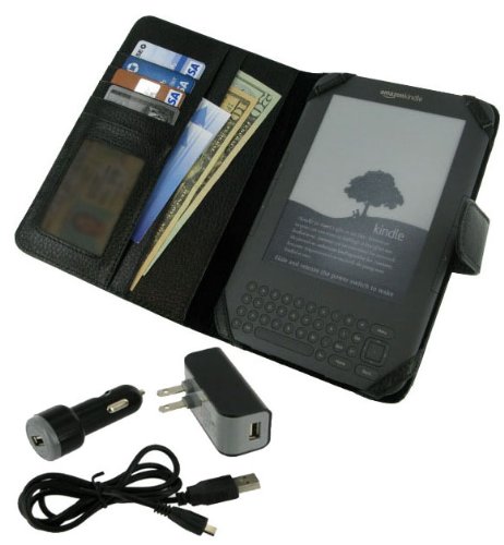 rooCase 4n1 Folio (Black) Leather Case with USB Data / Wall / Car Charger for Amazon Kindle Wireless Reading Device with 6" Display 3G + Wi-Fi (3rd Generation and Latest Generation) Review