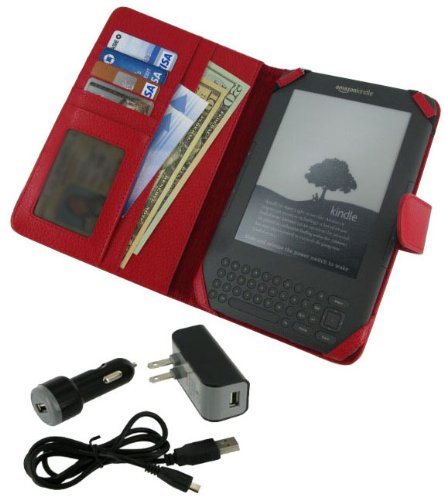 rooCase 4n1 Folio (Red) Leather Case with USB Data / Wall / Car Charger for Amazon Kindle Wireless Reading Device with 6" Display 3G + Wi-Fi (3rd Generation and Latest Generation) Review