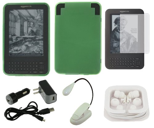 7n1 TPU Flex Matte (Green) Silicone Skin Case Cover / USB Data / Wall / Car Charger / LED Clip-On Book Light / Earbud / Screen Protector for Amazon Kindle Wireless Reading Device with 6" Display 3G + Wi-Fi (3rd Generation and Latest Generation)