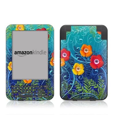 Poppies Design Protective Decal Skin Sticker for Amazon Kindle 3 (Latest Generation, 6 inch) E-Book Reader - Matte Satin Coating