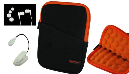 rooCASE 3n1 Super Bubble Neoprene Sleeve Case with LED Clip-On Book Light and Earbud for Amazon Kindle Wireless Reading Device with 6" Display 3G + Wi-Fi (3rd Generation and Latest Generation)(Black/ Orange)