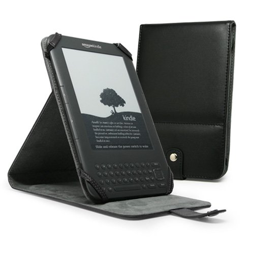 Clean and professional, BoxWave's Nero Leather Book Stand Case is a slim leather case that is custom fitted for your Kindle. This durable leather case protects and neatly stores your Kindle every day, while giving it a timeless look.Using leather and elastic straps, the Nero Leather Book Stand Case securely fastens your Kindle to the case at all four corners. The Nero Leather Book Stand Case converts into a stand that can be used to prop up your Kindle for hands free reading with three convenient angles to choose from. A snap keeps the Nero Leather Book Stand Case securely closed when your Kindle is not in use. Truly a convenient case that is perfect for your Kindle.