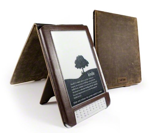 Tuff-Luv Saddle Leather Hide case cover & Stand for Amazon Kindle DX / DX 2 / 9.7 inch / 25 cm (1st & 2nd generation) - Brown