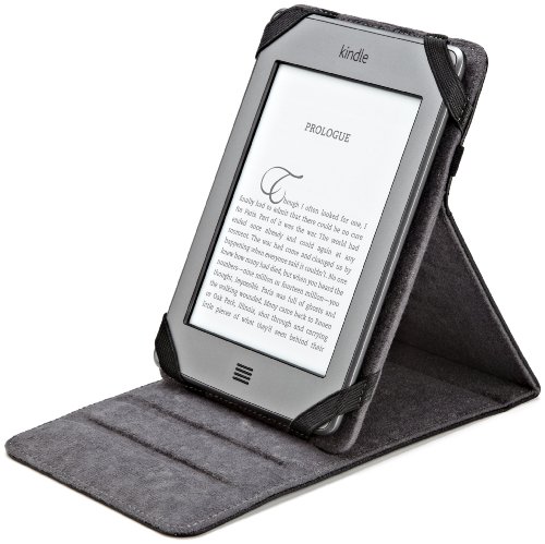The AmazonBasics leather folio with multi-angle adjustable stand is the perfect accessory for the newest Kindle and Kindle Touch. The folio cover features grooves on the microfiber interior that offer multiple viewing angles to enable ease of use when entering notes into your Kindle and hands free viewing when reading. Four corner elastics hold your Kindle securely in place with a convenient elastic strap to keep the case open or securely closed.