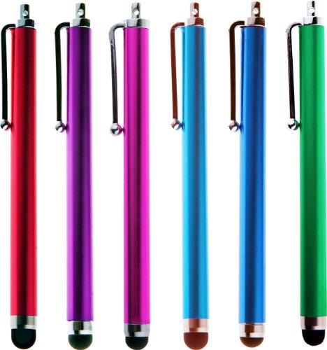 Pack of 6 Stylus - Red, Purple, Pink, Blue, Sea Blue, Green - Universal Touch Screen Pen for Kindle Fire Ipad 1 2 3 Ipod Iphone 4 4S 3g 3gs Motorola Xoom Samsung Galaxy Tab 8.9 10.1, Blackberry Playbook HTC Flyer Evo View Tablet - With Microfiber Cloth In The Friendly Swede® Retail Packaging